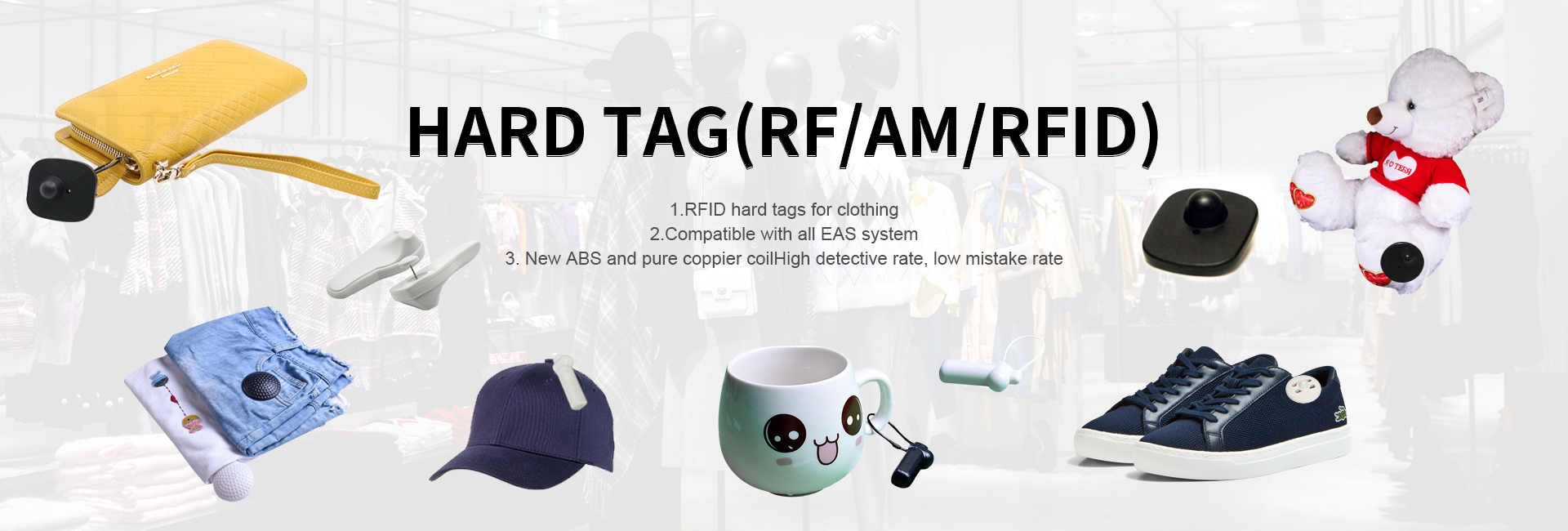 射频标签 硬标签 酒瓶扣 墨水标签 开锁器 声磁标签 解码板 天线 保护盒 钉 绳 自鸣标签 RFID系列产品 手机防盗展示器 相机防盗展示器 平板电脑防盗展示器 配件产品